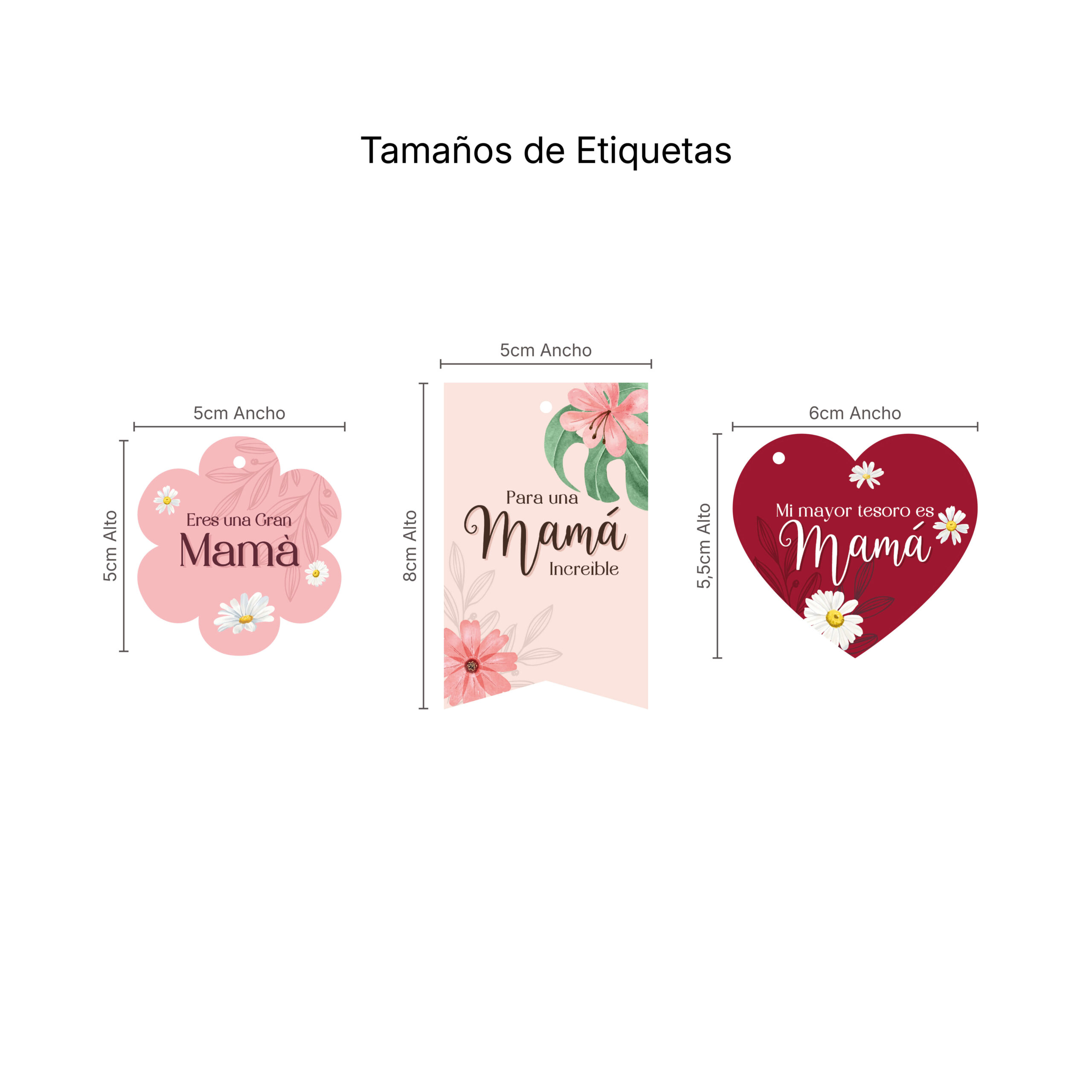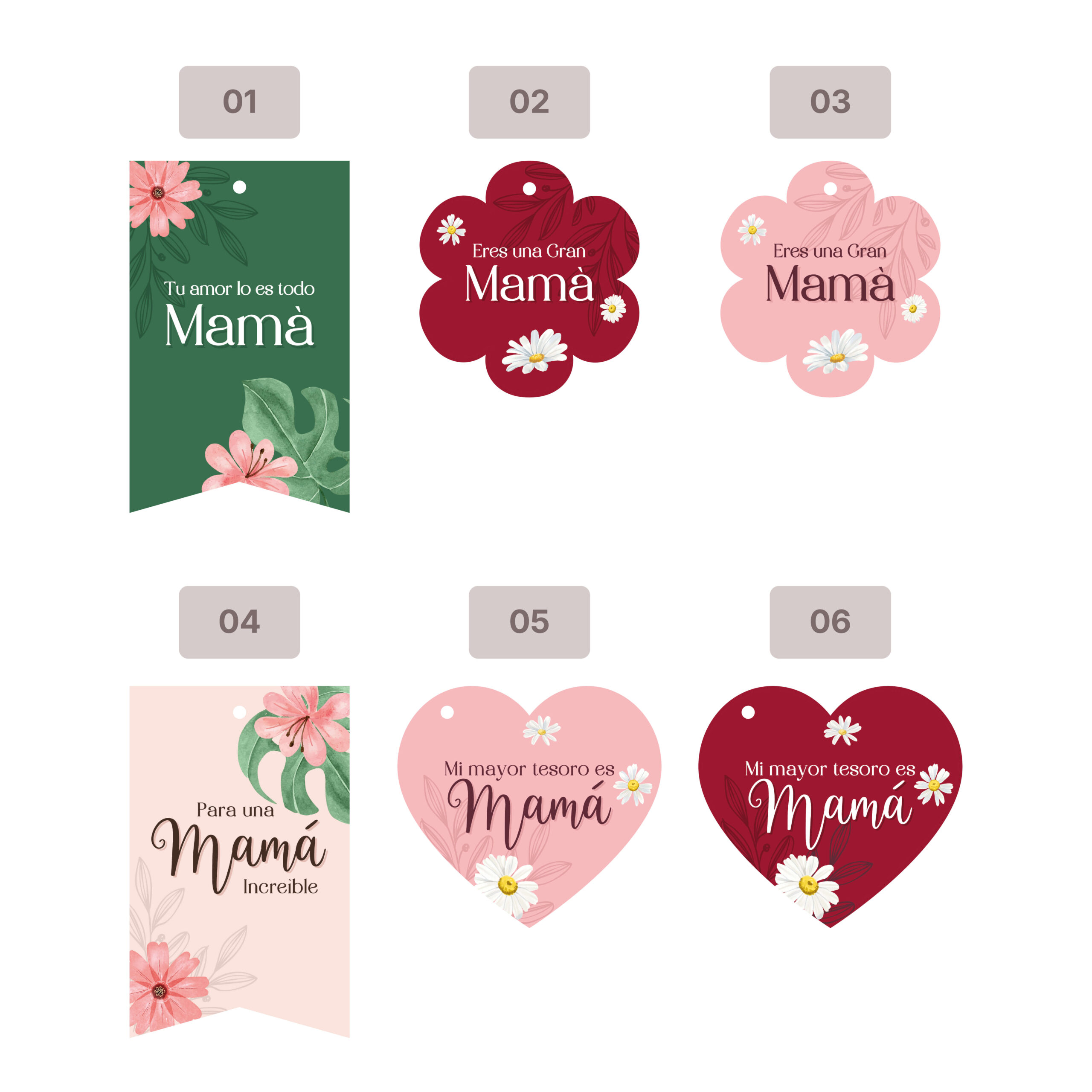 Etiquetas de 8cm, 5cm y 6cm, surtidas.